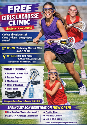 Lexington County Lacrosse will begin taking registration for the 2026 Spring Season starting December 1st.